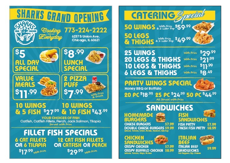 You’ll find the Sharks Fish And Chicken Menu packed with the kind of comfort food that makes you stop for a moment before you even place your order. Right at 6237 S Union Ave in Chicago, this spot leans into bold flavors and generous portions, and that comes through in everything from their crispy fried chicken to the flaky, seasoned fish dinners. As you look through the options, you’ll notice how easy it is to mix and match a little bit of everything, whether you’re craving wings with a kick or a simple basket of fried shrimp and fries.